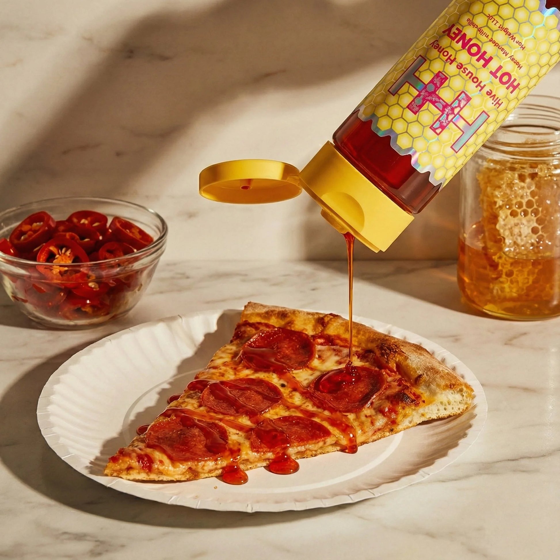 See Hive House Hot Honey transform ordinary dishes into unforgettable flavor experiences. From pizza to chicken and waffles, our hot honey adds a playful twist every time.